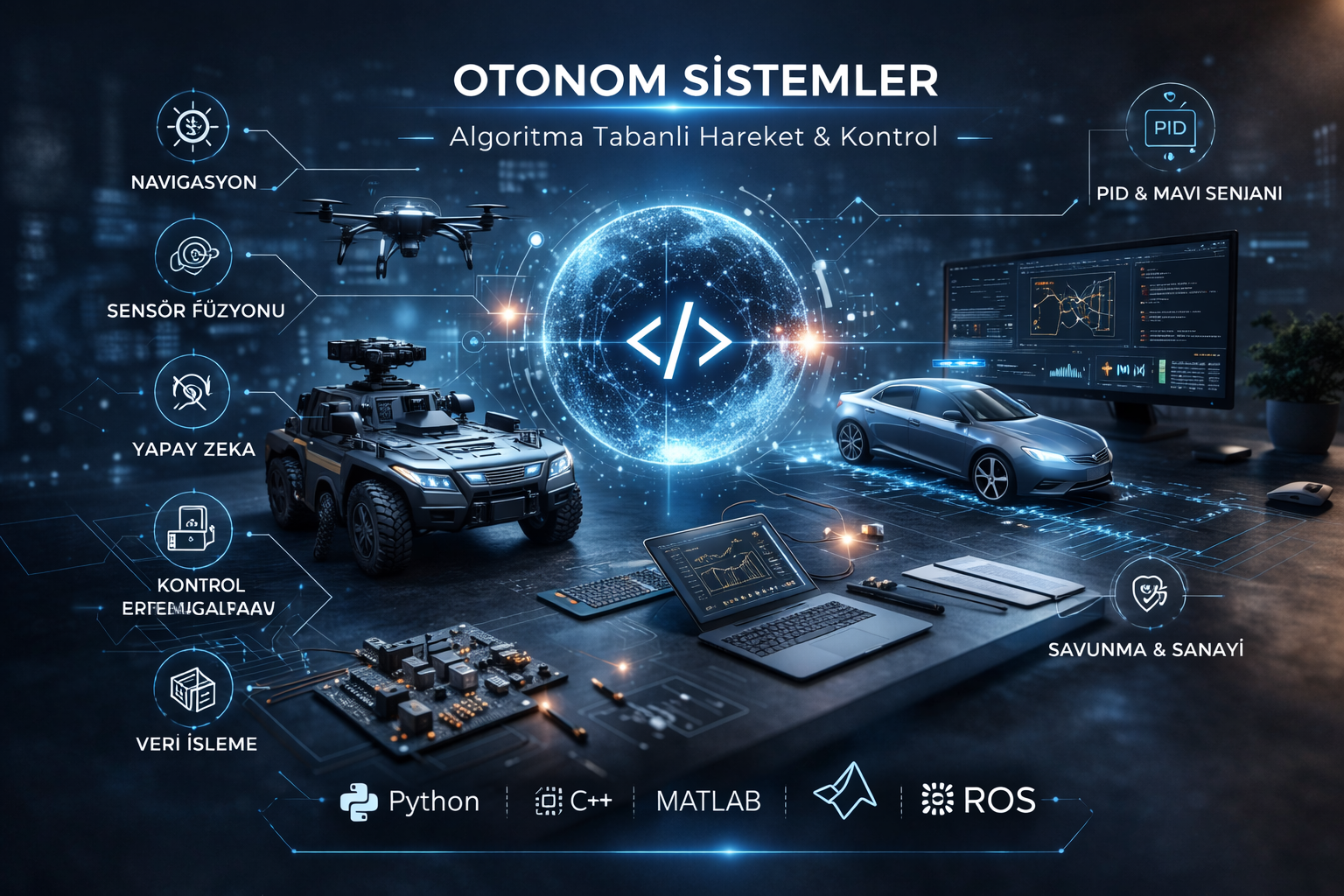 Otonom navigasyon, sensör füzyonu, PID ve ileri seviye kontrol algoritmaları ile kendi karar mekanizmasına sahip sistemler geliştiriyoruz. Endüstriyel ve savunma uygulamaları için özel çözümler üretiyoruz.